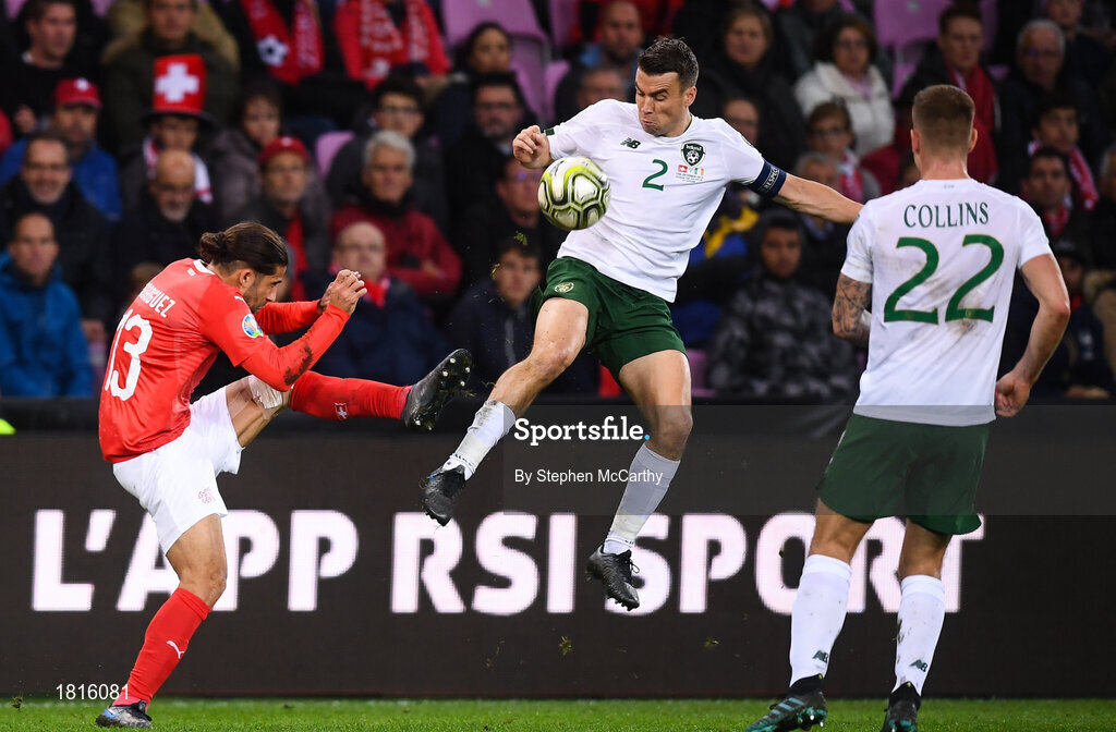 15 October 2019; Ricardo Rodríguez of Switzerland in action against Seamus Coleman of Republic of Ireland during the UEFA EURO2020 Qualifier match between Switzerland and Republic of Ireland at Stade de Genève in Geneva, Switzerland. Photo by Stephen McCarthy/Sportsfile