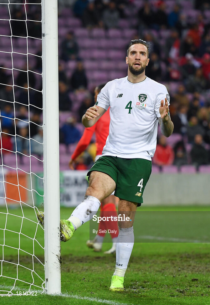 15 October 2019; Shane Duffy of Republic of Ireland reacts after failing to convert a chance during the UEFA EURO2020 Qualifier match between Switzerland and Republic of Ireland at Stade de Genève in Geneva, Switzerland. Photo by Seb Daly/Sportsfile
