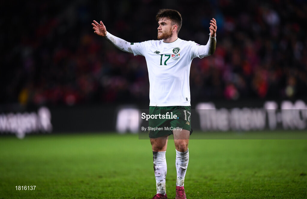 15 October 2019; Aaron Connolly of Republic of Ireland during the UEFA EURO2020 Qualifier match between Switzerland and Republic of Ireland at Stade de Genève in Geneva, Switzerland. Photo by Stephen McCarthy/Sportsfile