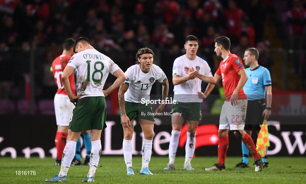 15 October 2019; Jeff Hendrick of Republic of Ireland reacts after the UEFA EURO2020 Qualifier match between Switzerland and Republic of Ireland at Stade de Genève in Geneva, Switzerland. Photo by Stephen McCarthy/Sportsfile