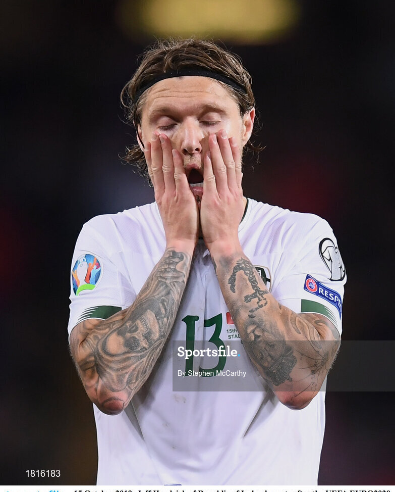 15 October 2019; Jeff Hendrick of Republic of Ireland reacts after the UEFA EURO2020 Qualifier match between Switzerland and Republic of Ireland at Stade de Genève in Geneva, Switzerland. Photo by Stephen McCarthy/Sportsfile