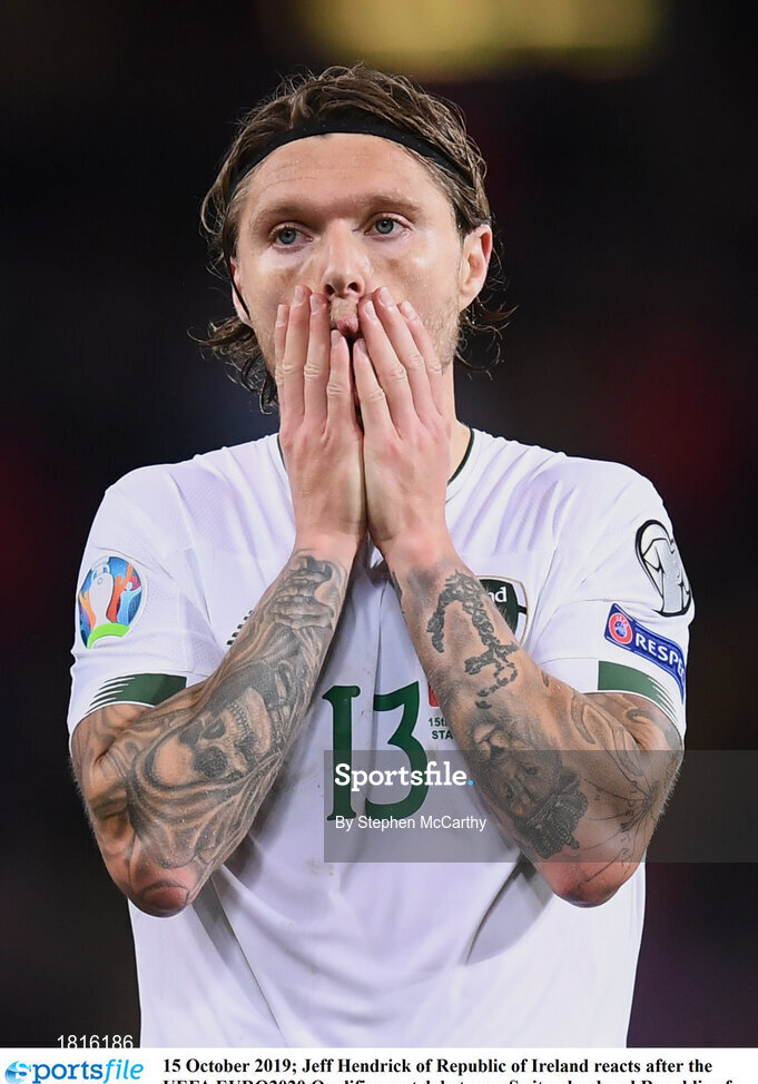 15 October 2019; Jeff Hendrick of Republic of Ireland reacts after the UEFA EURO2020 Qualifier match between Switzerland and Republic of Ireland at Stade de Genève in Geneva, Switzerland. Photo by Stephen McCarthy/Sportsfile