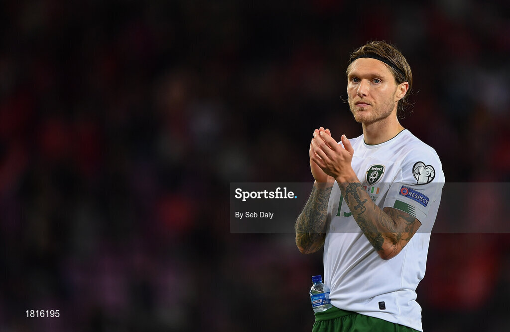 15 October 2019; Jeff Hendrick of Republic of Ireland claps the supporters following the UEFA EURO2020 Qualifier match between Switzerland and Republic of Ireland at Stade de Genève in Geneva, Switzerland. Photo by Seb Daly/Sportsfile