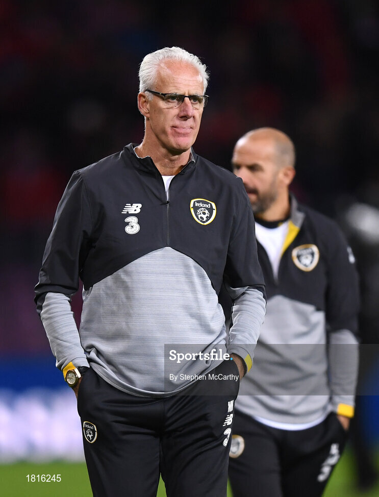 15 October 2019; Republic of Ireland manager Mick McCarthy reacts following the UEFA EURO2020 Qualifier match between Switzerland and Republic of Ireland at Stade de Genève in Geneva, Switzerland. Photo by Stephen McCarthy/Sportsfile