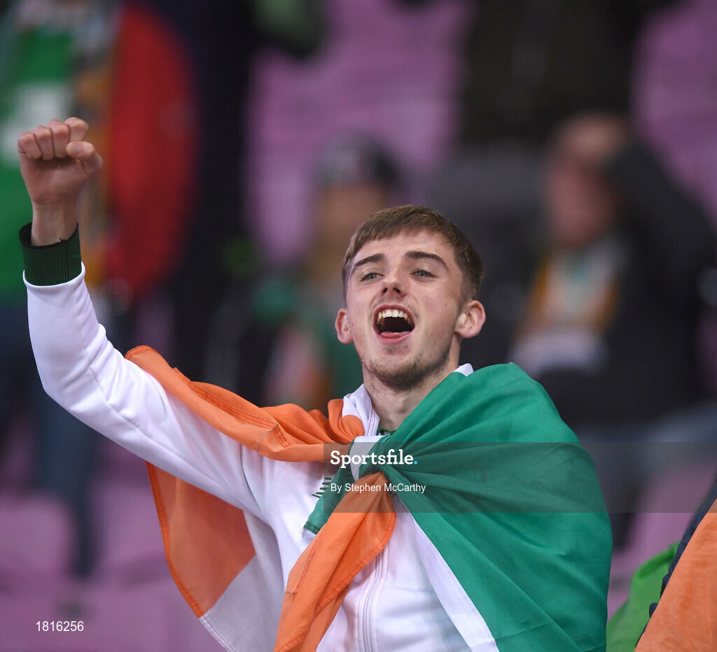 15 October 2019; A Republic of Ireland supporter following the UEFA EURO2020 Qualifier match between Switzerland and Republic of Ireland at Stade de Genève in Geneva, Switzerland. Photo by Stephen McCarthy/Sportsfile