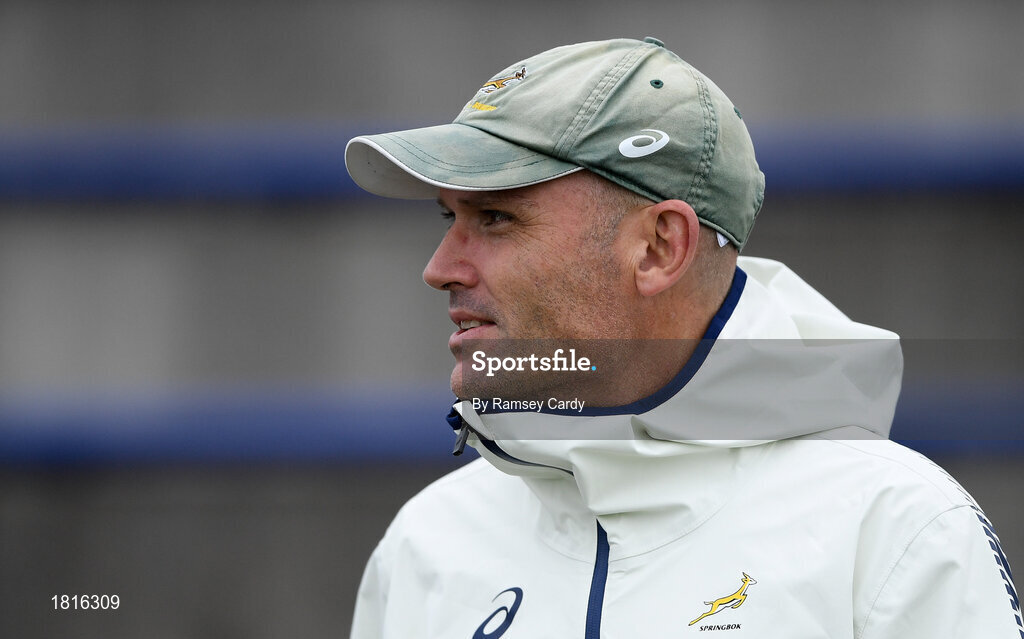 16 October 2019; Defence coach Jacques Nienaber during South Africa squad training at Fuchu Asahi Football Park in Tokyo, Japan. Photo by Ramsey Cardy/Sportsfile
