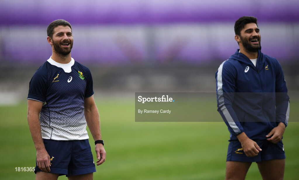 16 October 2019; Willie le Roux, left, and Damian de Allende during South Africa squad training at Fuchu Asahi Football Park in Tokyo, Japan. Photo by Ramsey Cardy/Sportsfile