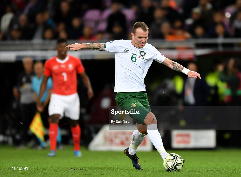 15 October 2019; Glenn Whelan of Republic of Ireland during the UEFA EURO2020 Qualifier match between Switzerland and Republic of Ireland at Stade de Genève in Geneva, Switzerland. Photo by Seb Daly/Sportsfile