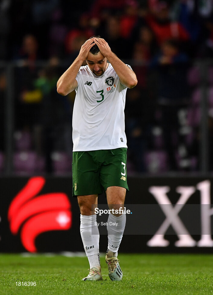 15 October 2019; Enda Stevens of Republic of Ireland after his side concedes a second goal during the UEFA EURO2020 Qualifier match between Switzerland and Republic of Ireland at Stade de Genève in Geneva, Switzerland. Photo by Seb Daly/Sportsfile