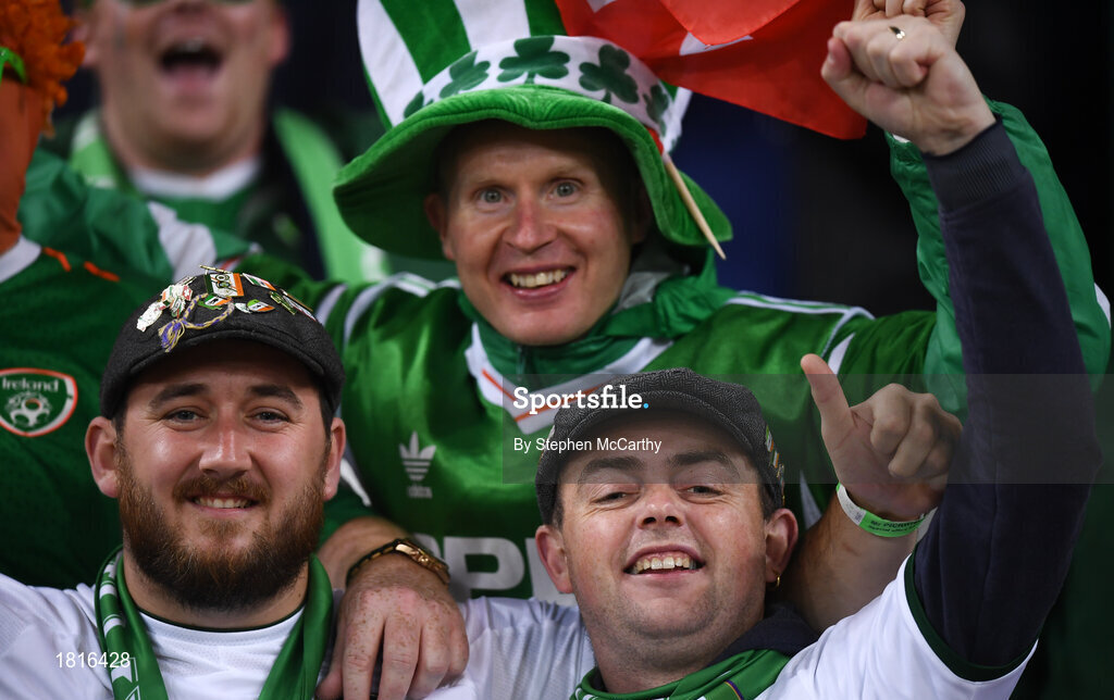 15 October 2019; Republic of Ireland supporters prior to the UEFA EURO2020 Qualifier match between Switzerland and Republic of Ireland at Stade de Genève in Geneva, Switzerland. Photo by Stephen McCarthy/Sportsfile