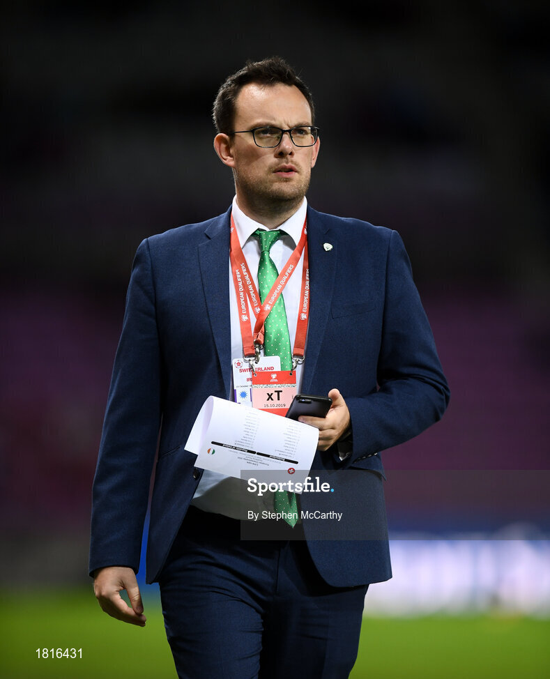 15 October 2019; FAI communications executive Daniel Kelly during the UEFA EURO2020 Qualifier match between Switzerland and Republic of Ireland at Stade de Genève in Geneva, Switzerland. Photo by Stephen McCarthy/Sportsfile