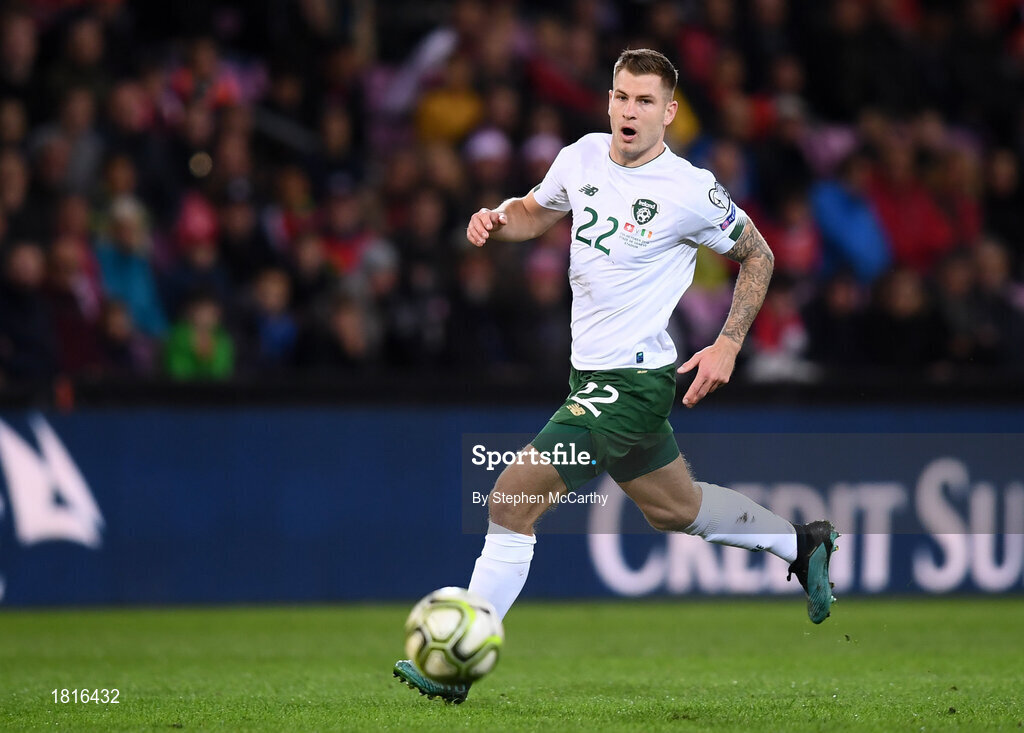 15 October 2019; James Collins of Republic of Ireland during the UEFA EURO2020 Qualifier match between Switzerland and Republic of Ireland at Stade de Genève in Geneva, Switzerland. Photo by Stephen McCarthy/Sportsfile