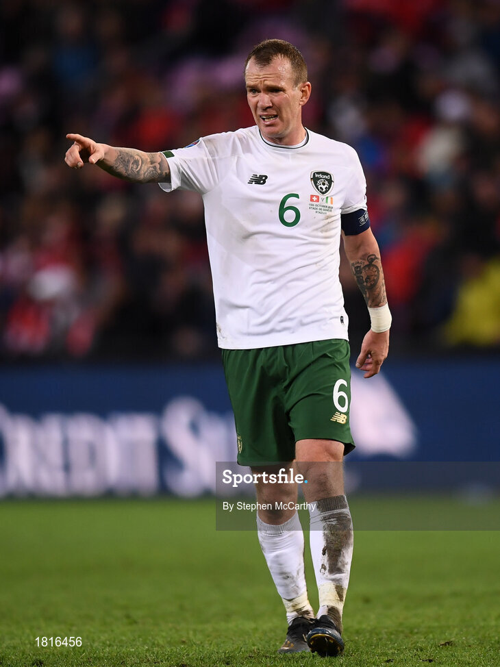 15 October 2019; Glenn Whelan of Republic of Ireland during the UEFA EURO2020 Qualifier match between Switzerland and Republic of Ireland at Stade de Genève in Geneva, Switzerland. Photo by Stephen McCarthy/Sportsfile