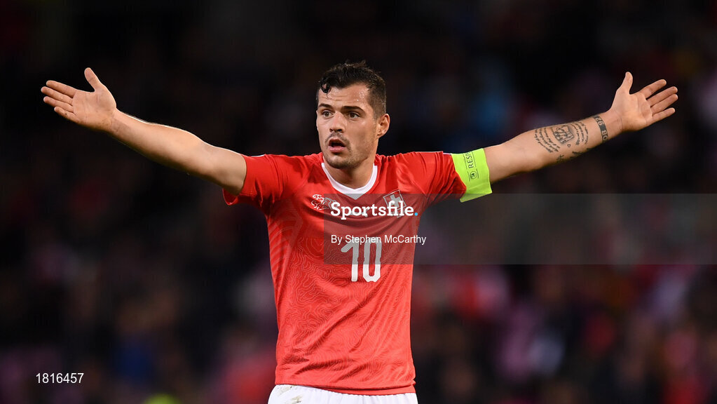 15 October 2019; Granit Xhaka of Switzerland during the UEFA EURO2020 Qualifier match between Switzerland and Republic of Ireland at Stade de Genève in Geneva, Switzerland. Photo by Stephen McCarthy/Sportsfile