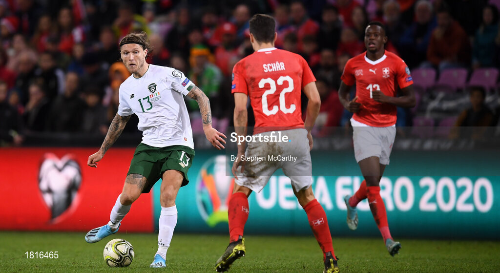 15 October 2019; Jeff Hendrick of Republic of Ireland during the UEFA EURO2020 Qualifier match between Switzerland and Republic of Ireland at Stade de Genève in Geneva, Switzerland. Photo by Stephen McCarthy/Sportsfile