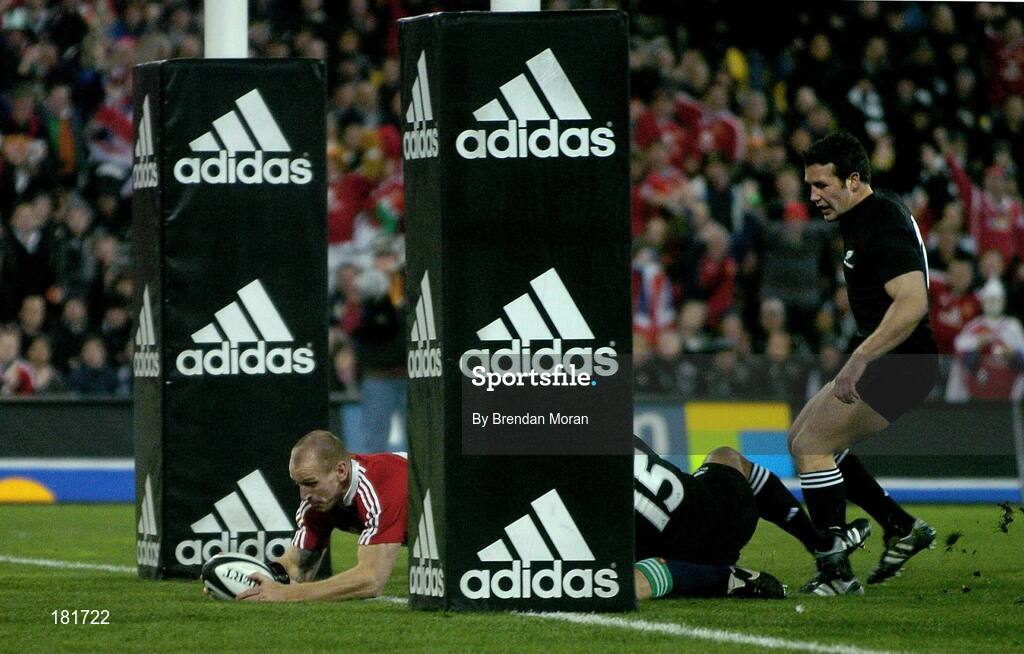2 July 2005; Gareth Thomas, British and Irish Lions, scores his sides try against New Zealand. British and Irish Lions Tour to New Zealand 2005, 2nd Test, New Zealand v British and Irish Lions, Westpac Stadium, Wellington, New Zealand. Picture credit; Brendan Moran / SPORTSFILE