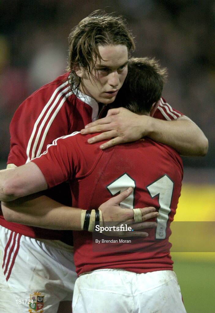 2 July 2005; Ryan Jones, British and Irish Lions, comiserates with team-mate Shane Williams after defeat by New Zealand. British and Irish Lions Tour to New Zealand 2005, 2nd Test, New Zealand v British and Irish Lions, Westpac Stadium, Wellington, New Zealand. Picture credit; Brendan Moran / SPORTSFILE