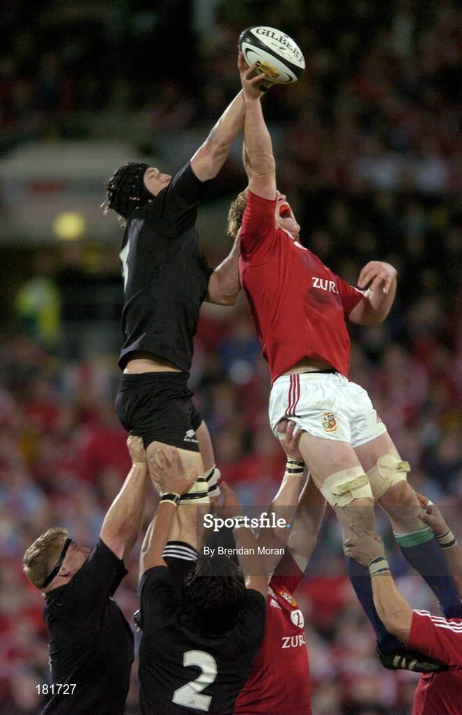 2 July 2005; Paul O'Connell, British and Irish Lions, contests a lineout with Ali WIlliams, New Zealand. British and Irish Lions Tour to New Zealand 2005, 2nd Test, New Zealand v British and Irish Lions, Westpac Stadium, Wellington, New Zealand. Picture credit; Brendan Moran / SPORTSFILE