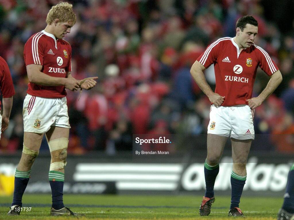 2 July 2005; A dejected Lewis Moody, left, and Stephen Jones, British and Irish Lions, at the final whistle. British and Irish Lions Tour to New Zealand 2005, 2nd Test, New Zealand v British and Irish Lions, Westpac Stadium, Wellington, New Zealand. Picture credit; Brendan Moran / SPORTSFILE