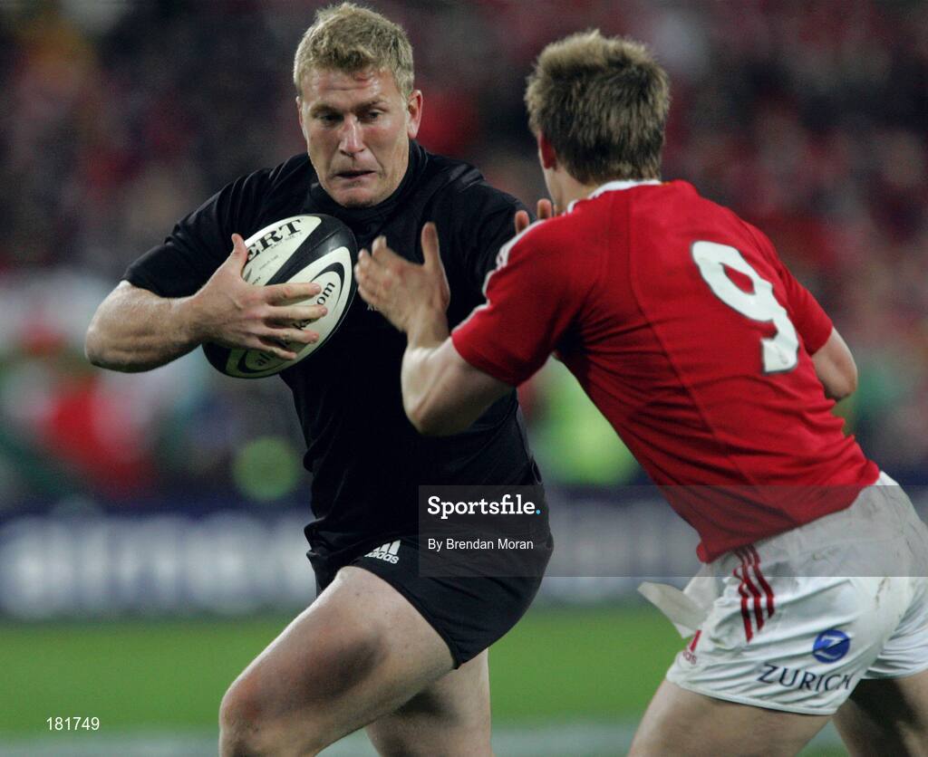 2 July 2005; Derren Whitcombe, New Zealand, is tackled by Dwayne Peel, British and Irish Lions. British and Irish Lions Tour to New Zealand 2005, 2nd Test, New Zealand v British and Irish Lions, Westpac Stadium, Wellington, New Zealand. Picture credit; Brendan Moran / SPORTSFILE