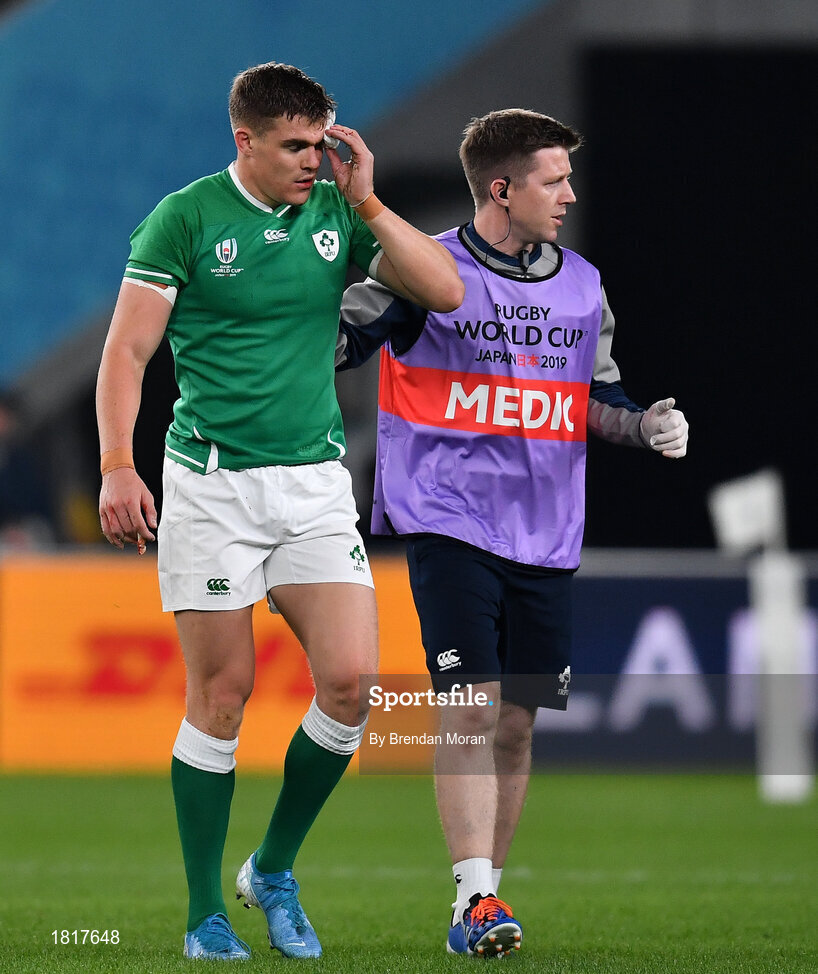 19 October 2019; Garry Ringrose of Ireland leaves the pitch with an injury during the 2019 Rugby World Cup Quarter-Final match between New Zealand and Ireland at the Tokyo Stadium in Chofu, Japan. Photo by Brendan Moran/Sportsfile