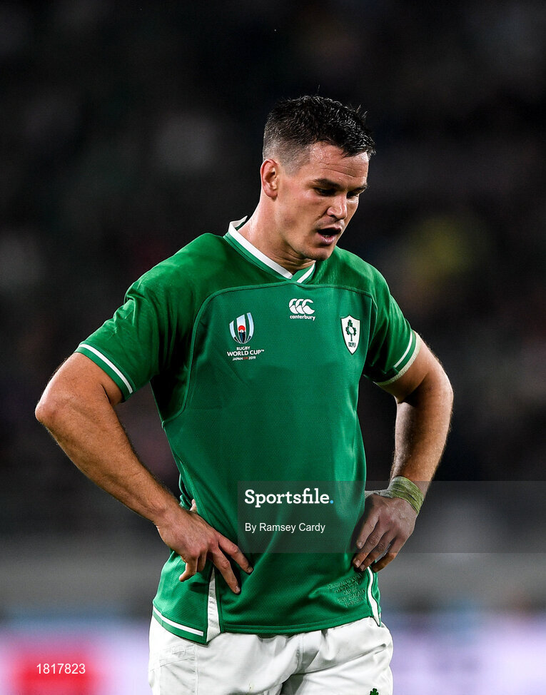 19 October 2019; Jonathan Sexton dejected during the 2019 Rugby World Cup Quarter-Final match between New Zealand and Ireland at the Tokyo Stadium in Chofu, Japan. Photo by Ramsey Cardy/Sportsfile