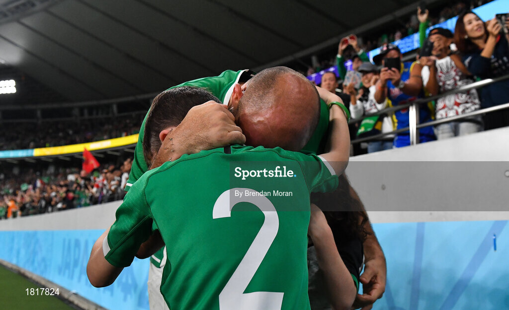 19 October 2019; Rory Best of Ireland hugs his son Ben after the 2019 Rugby World Cup Quarter-Final match between New Zealand and Ireland at the Tokyo Stadium in Chofu, Japan. Photo by Brendan Moran/Sportsfile