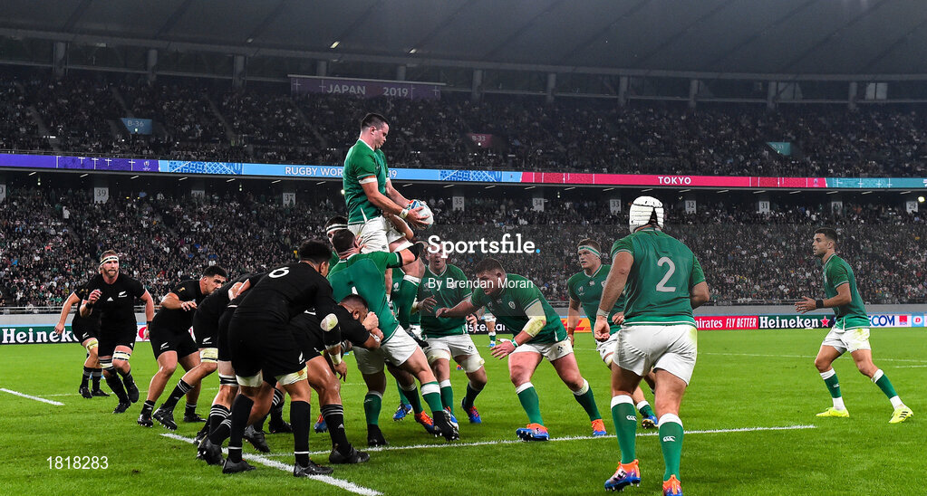 19 October 2019; James Ryan of Ireland wins a lineout from during the 2019 Rugby World Cup Quarter-Final match between New Zealand and Ireland at the Tokyo Stadium in Chofu, Japan. Photo by Brendan Moran/Sportsfile