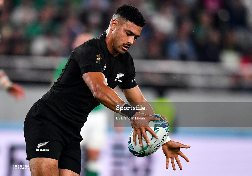19 October 2019; Richie Mo'unga of New Zealand during the 2019 Rugby World Cup Quarter-Final match between New Zealand and Ireland at the Tokyo Stadium in Chofu, Japan. Photo by Brendan Moran/Sportsfile