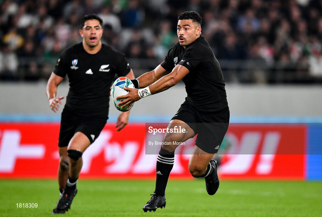 19 October 2019; Richie Mo'unga of New Zealand during the 2019 Rugby World Cup Quarter-Final match between New Zealand and Ireland at the Tokyo Stadium in Chofu, Japan. Photo by Brendan Moran/Sportsfile