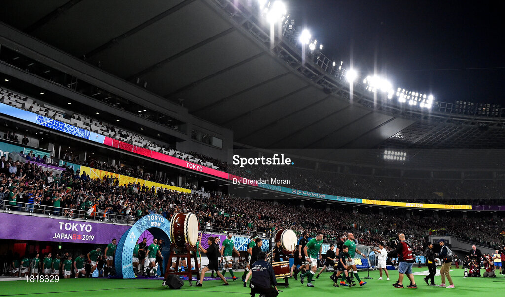 19 October 2019; Ireland captain Rory Best leads his side out prior to the 2019 Rugby World Cup Quarter-Final match between New Zealand and Ireland at the Tokyo Stadium in Chofu, Japan. Photo by Brendan Moran/Sportsfile