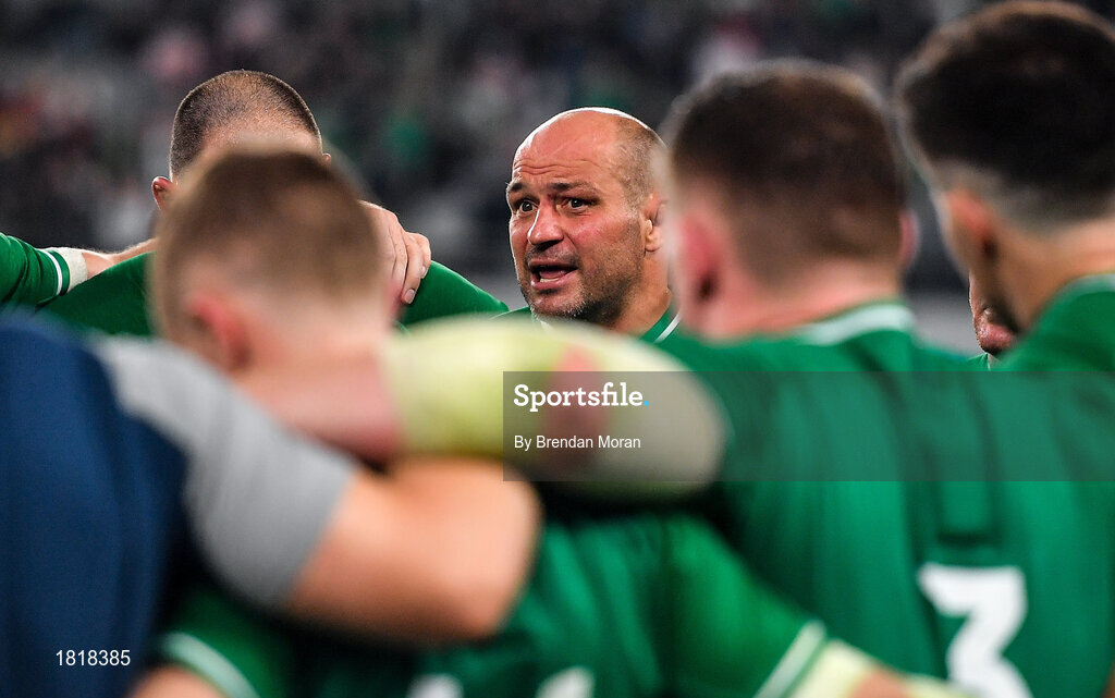 19 October 2019; Ireland captain Rory Best speaks to his team-mates after the 2019 Rugby World Cup Quarter-Final match between New Zealand and Ireland at the Tokyo Stadium in Chofu, Japan. Photo by Brendan Moran/Sportsfile