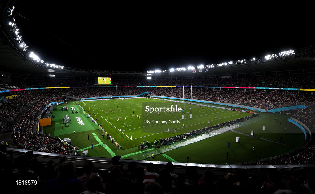 20 October 2019; A general view during the 2019 Rugby World Cup Quarter-Final match between Japan and South Africa at the Tokyo Stadium in Chofu, Japan. Photo by Ramsey Cardy/Sportsfile