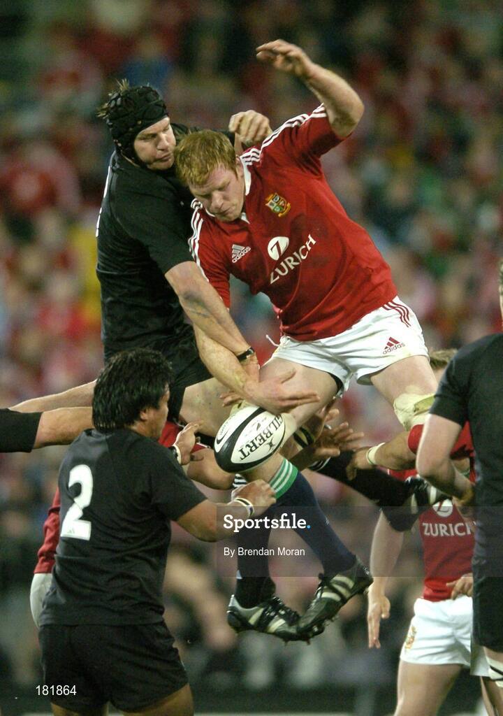 2 July 2005; Paul O'Connell, British and Irish Lions, contests a lineout ball with Ali Williams, New Zealand. British and Irish Lions Tour to New Zealand 2005, 2nd Test, New Zealand v British and Irish Lions, Westpac Stadium, Wellington, New Zealand. Picture credit; Brendan Moran / SPORTSFILE