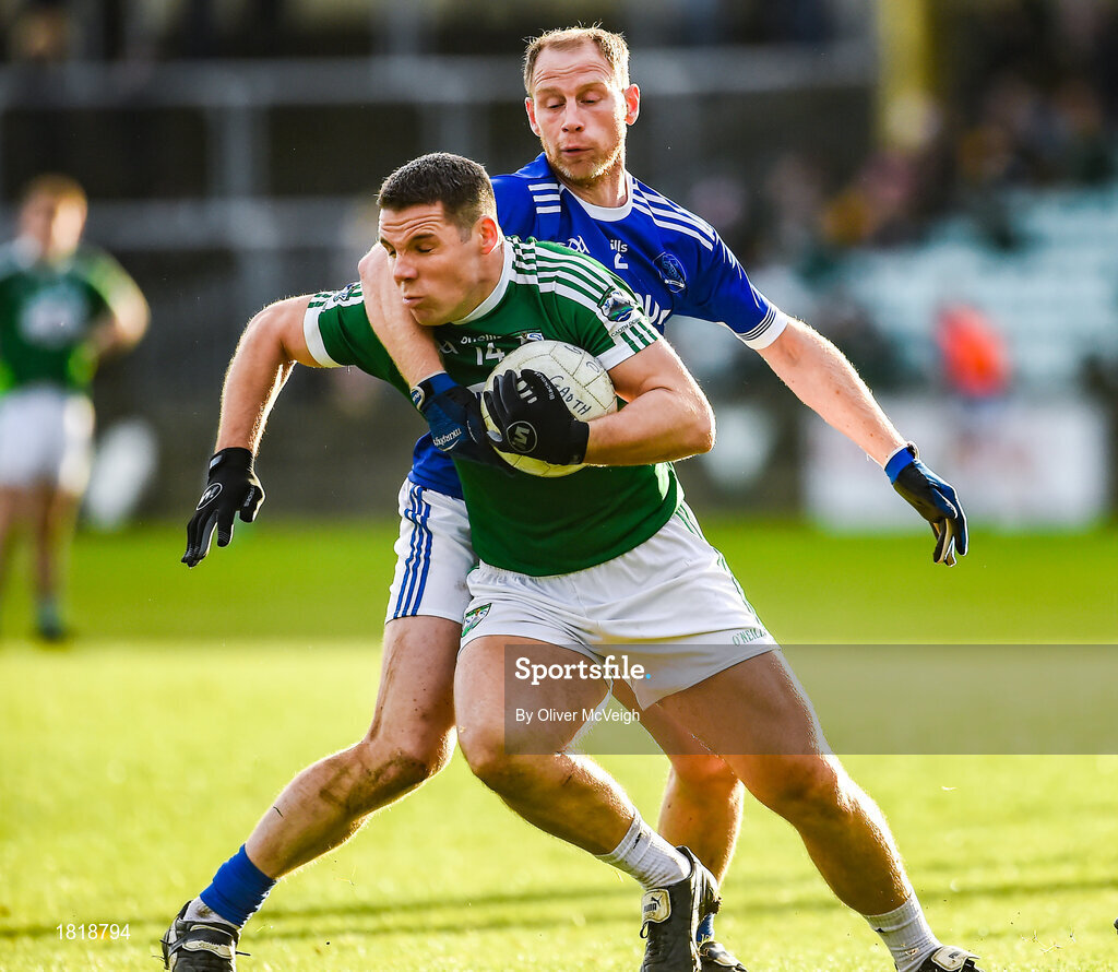 20 October 2019; Kevin Cassidy of Gaoth Dobhair in action against Anthony Thompson of Naomh Conaill during the Donegal County Senior Club Football Championship Final match between Gaoth Dobhair and Naomh Conaill at Mac Cumhaill Park in Ballybofey, Donegal. Photo by Oliver McVeigh/Sportsfile