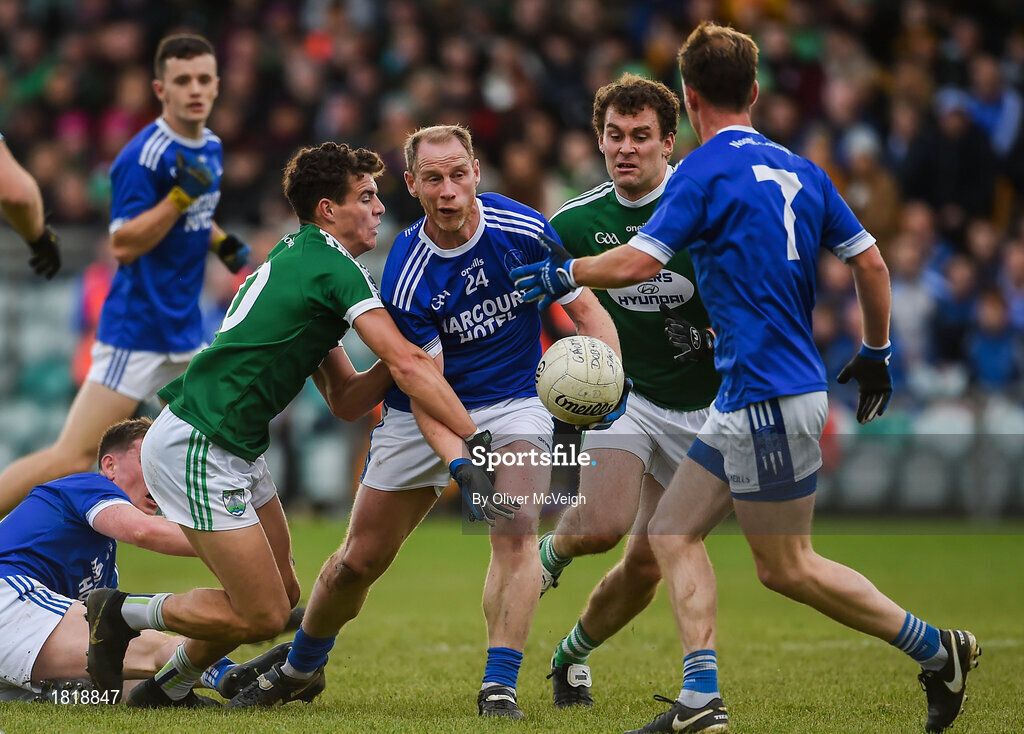 20 October 2019; Anthony Thompson of Naomh Conaill in action against Ciaran Gillespie and Eamonn McGee of Gaoth Dobhair during the Donegal County Senior Club Football Championship Final match between Gaoth Dobhair and Naomh Conaill at Mac Cumhaill Park in Ballybofey, Donegal. Photo by Oliver McVeigh/Sportsfile