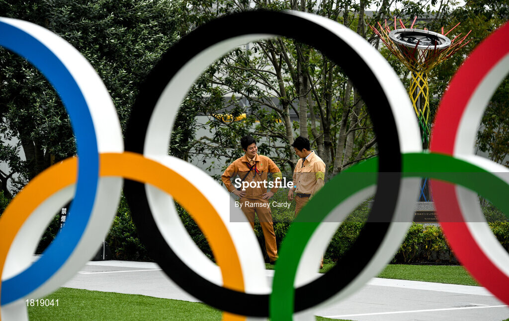 21 October 2019; Local workers outside the Tokyo Olympic Stadium in Shinjuku City, the Tokyo 2020 Summer Olympic Games venue for track and field events, as well as the opening and closing ceremonies. The Tokyo 2020 Games of the XXXII Olympiad take place from Friday 24th July to Sunday 9th August 2020 in Tokyo, Japan, the second Summer Olympics Games to be held in Tokyo, the first being 1964. Photo by Ramsey Cardy/Sportsfile