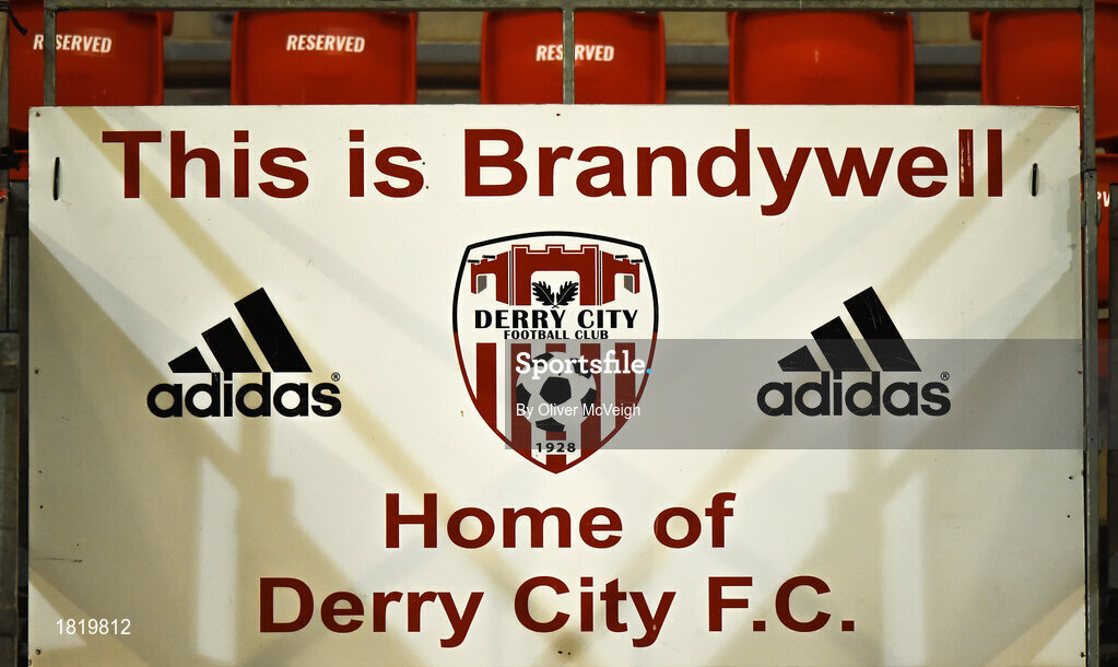 22 October 2019; A general view of a sign in the Ryan McBride Brandywell Stadium before the SSE Airtricity League Premier Division match between Derry City and St Patrick's Athletic at Ryan McBride Brandywell Stadium in Derry. Photo by Oliver McVeigh/Sportsfile