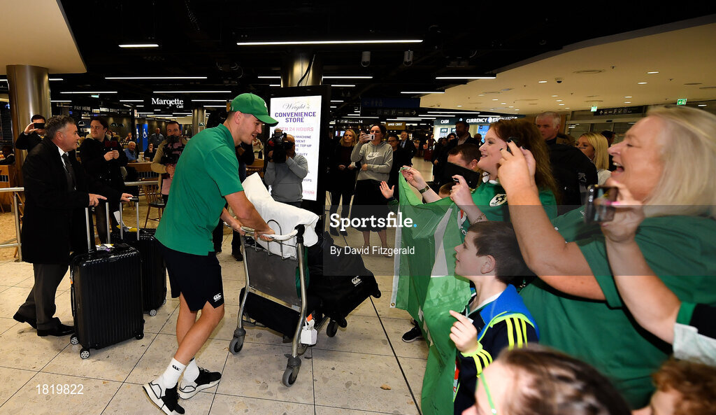 22 October 2019; Jonathan Sexton on the Ireland Rugby Team's return at Dublin Airport from the Rugby World Cup. Photo by David Fitzgerald/Sportsfile