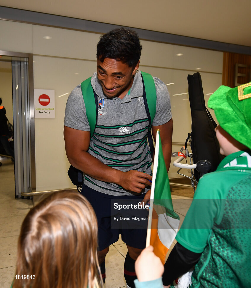 22 October 2019; Bundee Aki is greeted by supporters on the Ireland Rugby Team's return at Dublin Airport from the Rugby World Cup. Photo by David Fitzgerald/Sportsfile