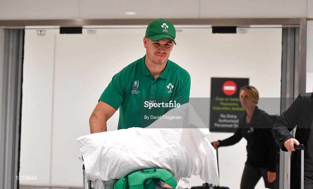 22 October 2019; Jonathan Sexton on the Ireland Rugby Team's return at Dublin Airport from the Rugby World Cup. Photo by David Fitzgerald/Sportsfile