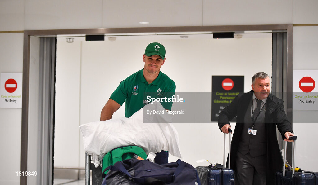 22 October 2019; Jonathan Sexton on the Ireland Rugby Team's return at Dublin Airport from the Rugby World Cup. Photo by David Fitzgerald/Sportsfile