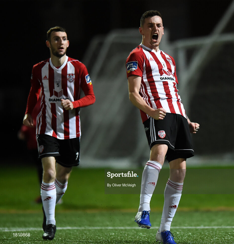 22 October 2019; David Parkhouse of Derry City celebrates after scoring his side's first goal during the SSE Airtricity League Premier Division match between Derry City and St Patrick's Athletic at Ryan McBride Brandywell Stadium in Derry. Photo by Oliver McVeigh/Sportsfile