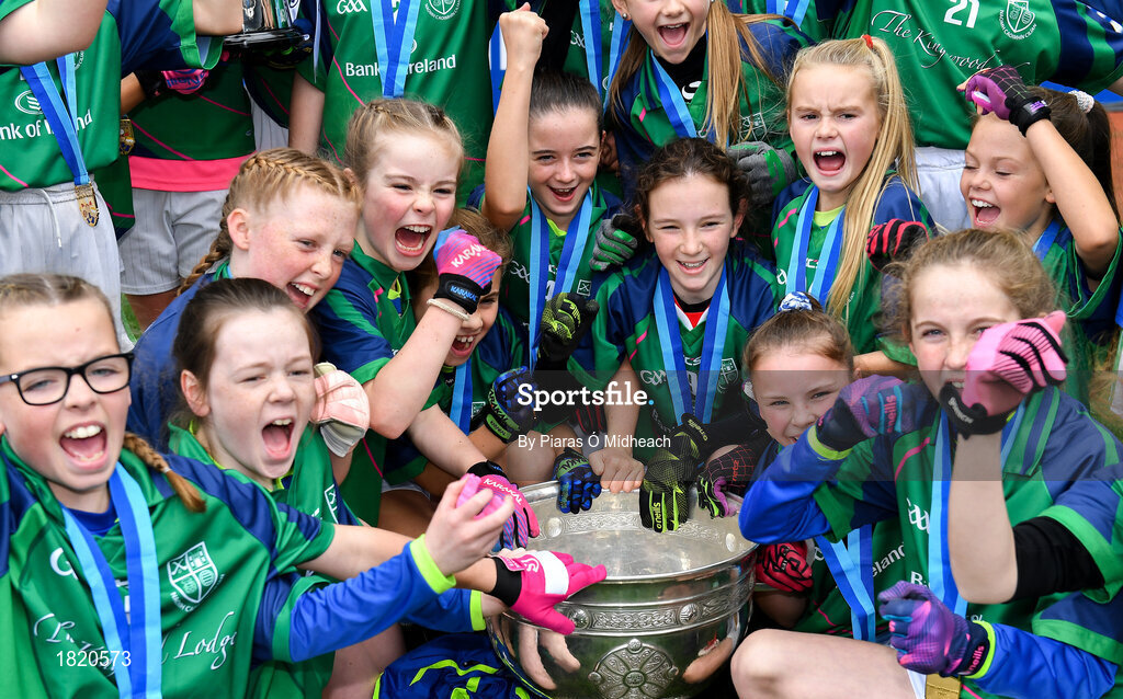 23 October 2019; St Kevin's GNS, Kilnamanagh, players celebrate after beating Gaelscoil Eiscir Riara, Leamhcán, in the Corn na Laoch Cup Final during day two of the Allianz Cumann na mBunscol Finals at Croke Park in Dublin. Photo by Piaras Ó Mídheach/Sportsfile