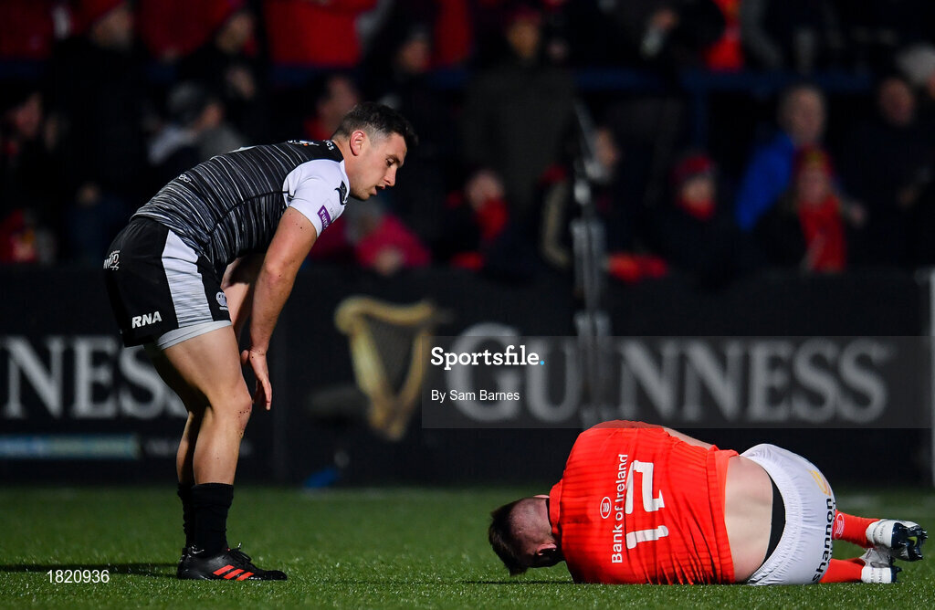 25 October 2019; Matthew Aubrey of Ospreys looks on after a collision with Rory Scannell of Munster during the Guinness PRO14 Round 4 match between Munster and Ospreys at Irish Independent Park in Cork. Photo by Sam Barnes/Sportsfile