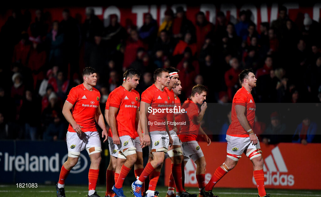 25 October 2019; The Munster pack during the Guinness PRO14 Round 4 match between Munster and Ospreys at Irish Independent Park in Cork. Photo by David Fitzgerald/Sportsfile