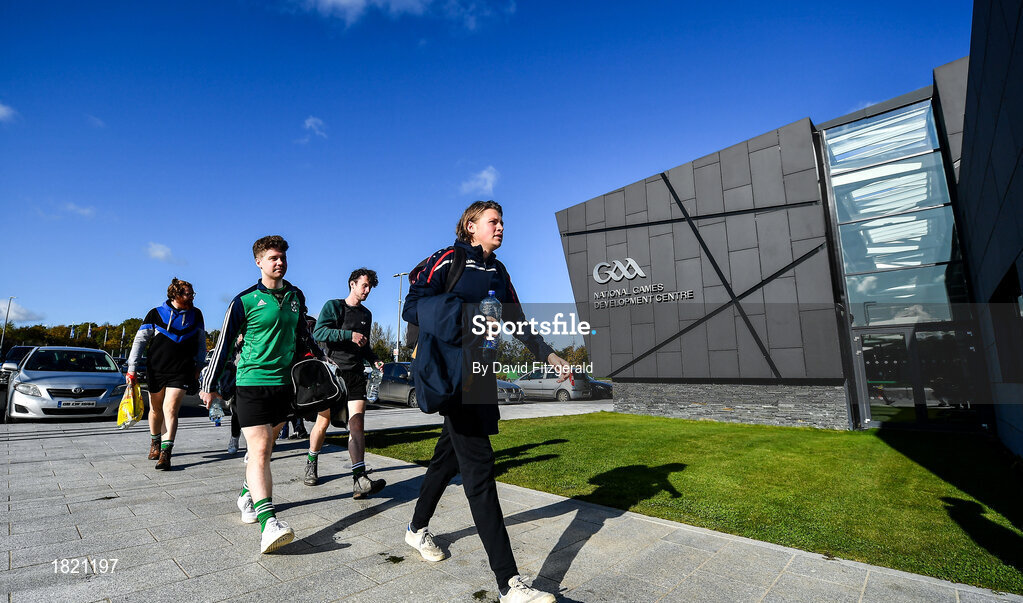 26 October 2019; Players from the Berlin GAA team arrive prior to the AIB Leinster Club Junior Football Championship Round 1 match between Berlin GAA and Kenagh GAA at GAA Centre of Excellence at Abbottstown, Dublin. Photo by David Fitzgerald/Sportsfile