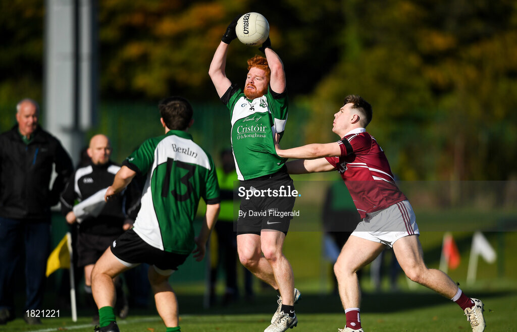 26 October 2019; Ruairi O'Neill of Berlin GAA in action against Graham Forbes of Kennagh GAA during the AIB Leinster Club Junior Football Championship Round 1 match between Berlin GAA and Kenagh GAA at GAA Centre of Excellence at Abbottstown, Dublin. Photo by David Fitzgerald/Sportsfile