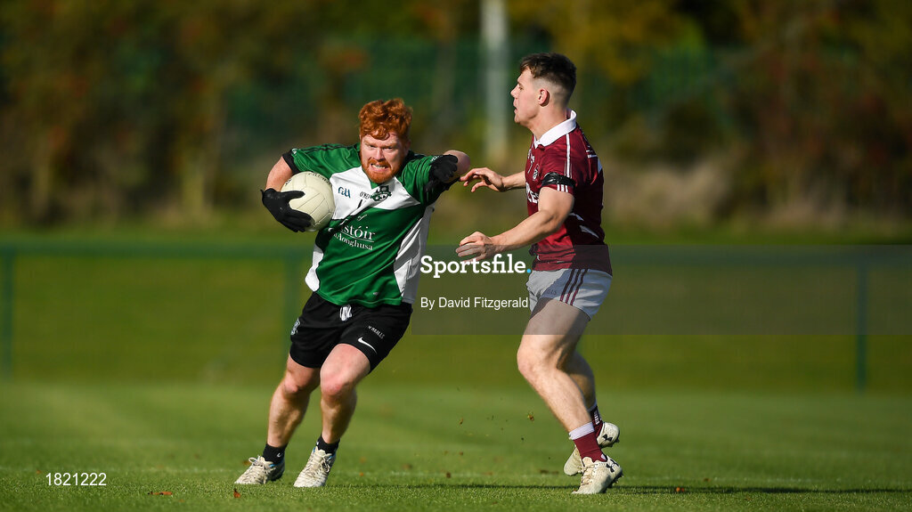 26 October 2019; Ruairi O'Neill of Berlin GAA in action against Graham Forbes of Kennagh GAA during the AIB Leinster Club Junior Football Championship Round 1 match between Berlin GAA and Kenagh GAA at GAA Centre of Excellence at Abbottstown, Dublin. Photo by David Fitzgerald/Sportsfile