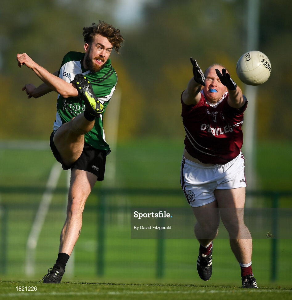 26 October 2019; Patrick Joy of Berlin GAA in action against John Gill of Kennagh GAA during the AIB Leinster Club Junior Football Championship Round 1 match between Berlin GAA and Kenagh GAA at GAA Centre of Excellence at Abbottstown, Dublin. Photo by David Fitzgerald/Sportsfile